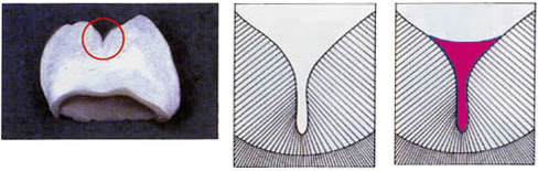 歯の溝をフッ素が放出される樹脂で埋めます。(シーラント処置)